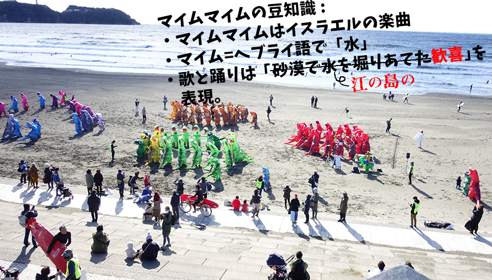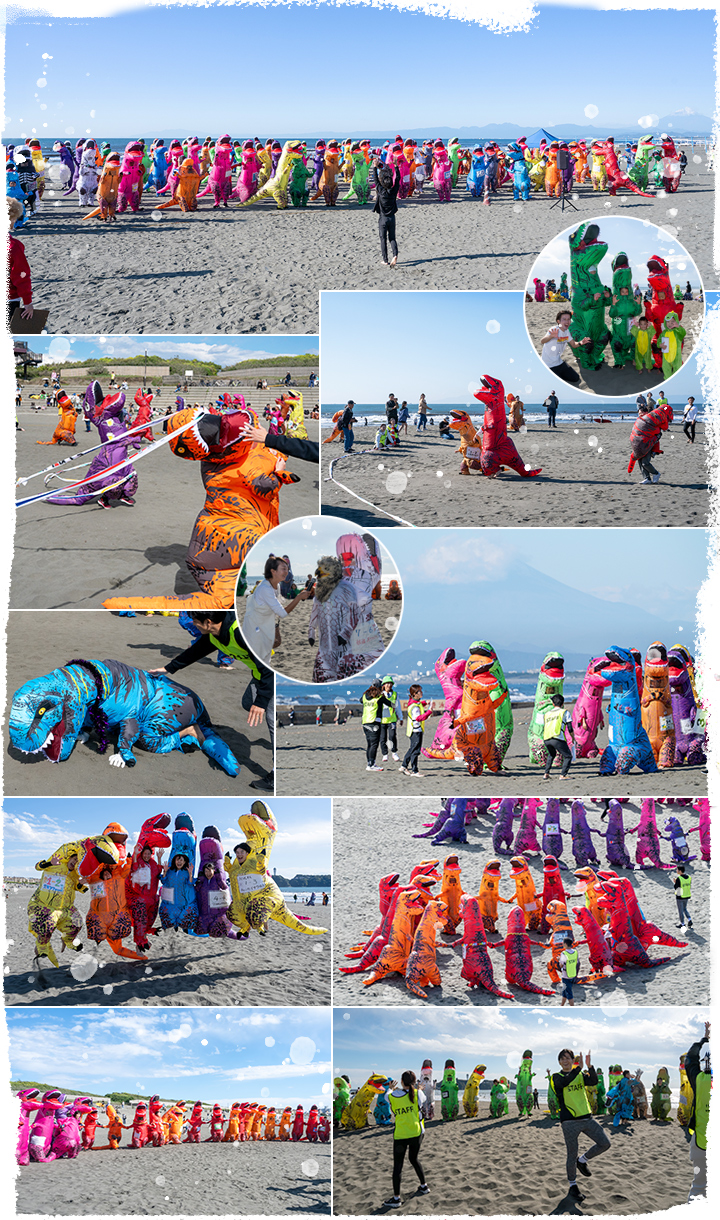 江の島と富士山と湘南の海に囲まれた砂浜を駆け抜け、踊ったティラノサウルス達。
